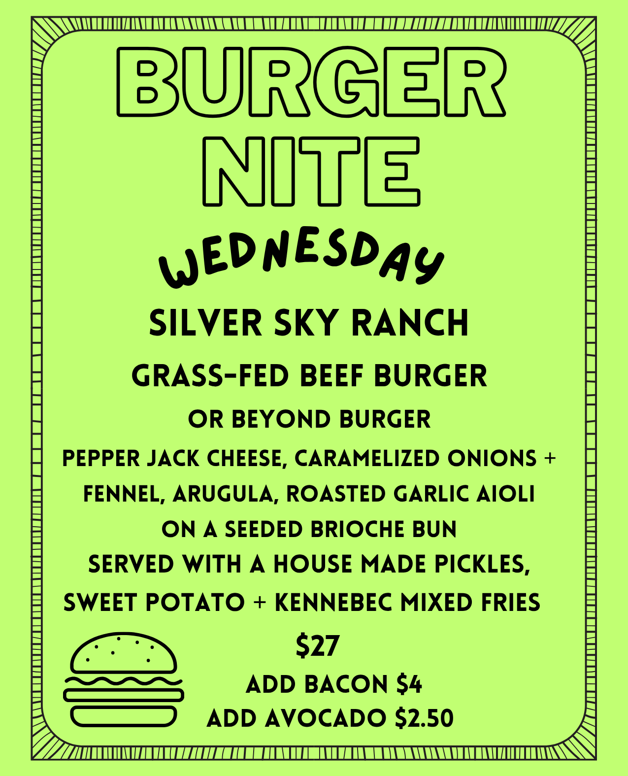 Our dinner menu is available for dining in or carryout with curbside pickup. Order online, call or come in!